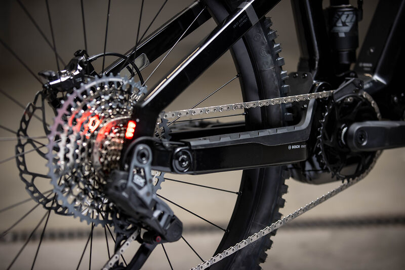 De mullet-opstelling met een 29-inch voorwiel en een 27,5-inch achterwiel zorgt voor extra wendbaarheid. Praktisch: vast geïnstalleerde verlichting op de achtervork verhoogt de zichtbaarheid, terwijl een robuuste, verlengde bescherming van de achtervork en een afdekking van het hoofdlager de e-MTB betrouwbaar beschermen. Voor lange tochten kan de geïntegreerde 800 Wh-accu worden uitgebreid met de «Bosch PowerMore»-extra accu van 250 Wh – voor eindeloos rijplezier.