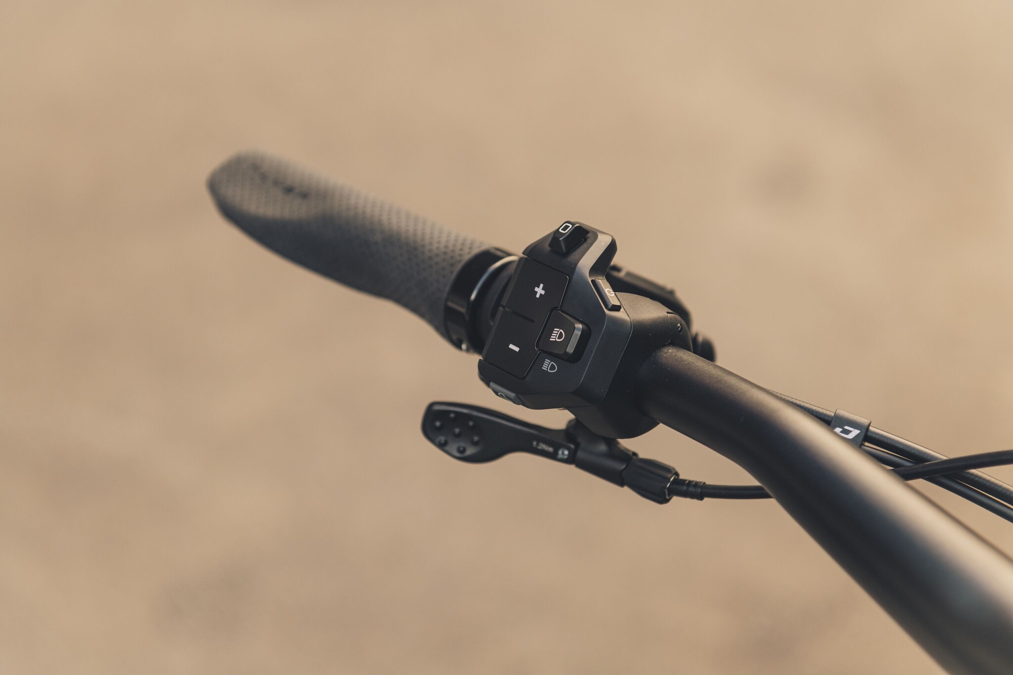 De motor en de versnellingsbak vormen één geheel en zijn compact in het midden van de e-bike geïntegreerd. Beschermd tegen weersinvloeden en met de hoogwaardige riemaandrijving is deze technologische innovatie vrijwel onderhoudsvrij. De Pinion-aandrijving heeft een krachtige motor en een elektronische versnellingsbak met 12 versnellingen.