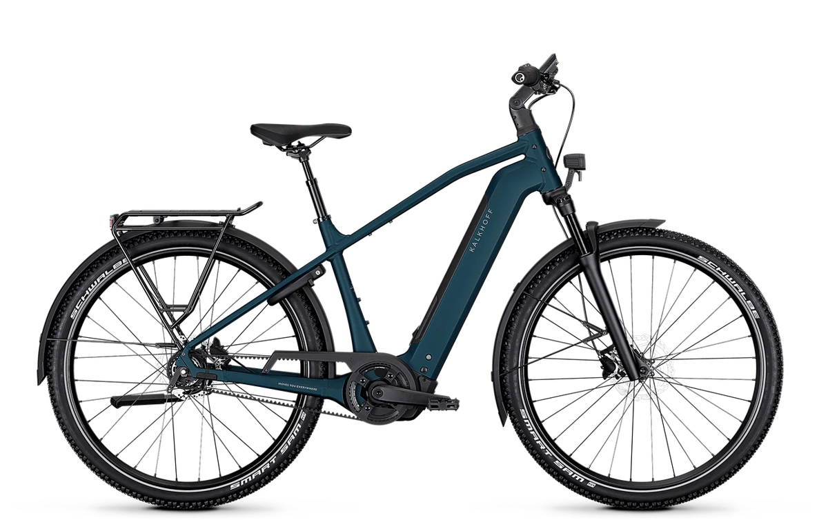 De Kalkhoff Entice 3 Excite Belt is een hoogwaardige e-bike met de Bosch Performance Line CX Smart System-motor (85 Nm). De krachtige Bosch PowerTube 600 Wh-accu biedt een groot bereik, terwijl het Kiox 300 kleurendisplay uitgebreide ritinformatie toont. De Shimano Nexus 5-speed naafversnelling in combinatie met de onderhoudsarme Gates Carbondrive CDX-riemaandrijving zorgt voor soepel en stil fietsen. De fiets is voorbereid op een voordrager, ideaal voor dagelijks gebruik en lange ritten.