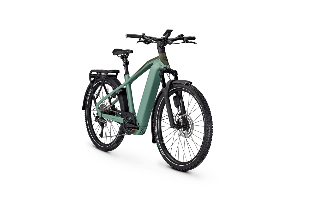 De Kalkhoff Entice 5+ Excite ABS Diamant is een high-end trekking-e-bike die maximale controle, veiligheid en kracht combineert. De Bosch Performance Line CX Smart System motor (85 Nm) levert indrukwekkende ondersteuning, terwijl de 800 Wh PowerTube accu lange afstanden mogelijk maakt. Dankzij Shimano Cues 11-speed versnelling schakel je nauwkeurig en soepel. Het geavanceerde Bosch ABS-systeem verhoogt de veiligheid tijdens remmen, vooral op natte of steile ondergronden. Het Kiox 500 kleurendisplay biedt uitgebreide ritdata en smart-functies. Deze Diamant-variant is ideaal voor sportieve fietsers die premium prestaties en stabiliteit zoeken.